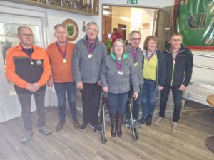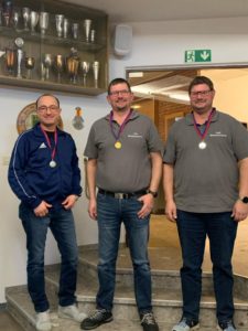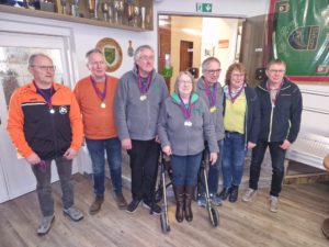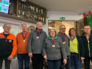 Bei den Senioren I gewinnt Reinhard Tönjes vom SV Stoppelmarkt Gold – vor Hermann Düvel aus Damme und Jakob Eveslage aus Langwege. Bei den Damen der Altersklasse geht die Goldmedaille nach Bösel: Sabine Hempen steht auf dem ersten Platz! Irene Bardella (Tell Scheps) und Bärbel Kloppenburg (Rechterfeld) komplettieren das Treppchen. Gold geht hier an die SSG Angelbeck, die sich hier von Jörg Beining sowie Silvia und August Huesmann würdig vertreten wurde.