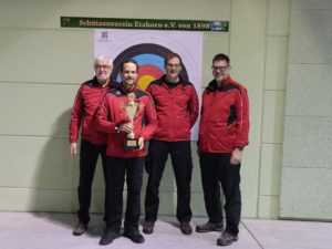 Beim Endkampf wurden dann zwei Durchgänge mit jeweils 30 Pfeilen geschossen. Der BS Delmenhorst konnte seinen Titel der letzten zwei Jahre leider nicht verteidigen. Dafür aber hat sich die Mannschaft des SV Petersehn beweisen können und hat mit einer Gesamtringzahl von 1541 den 1. Platz belegt und durfte den Wanderpokal mit zu sich ins Vereinsheim nehmen.